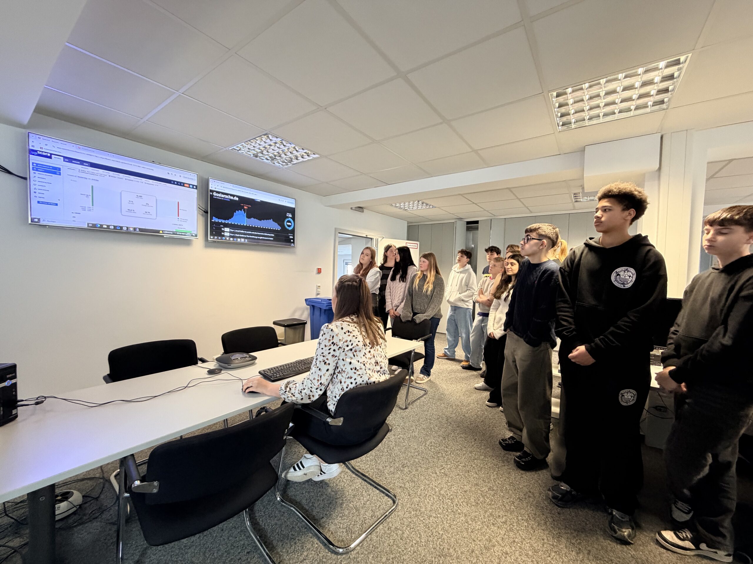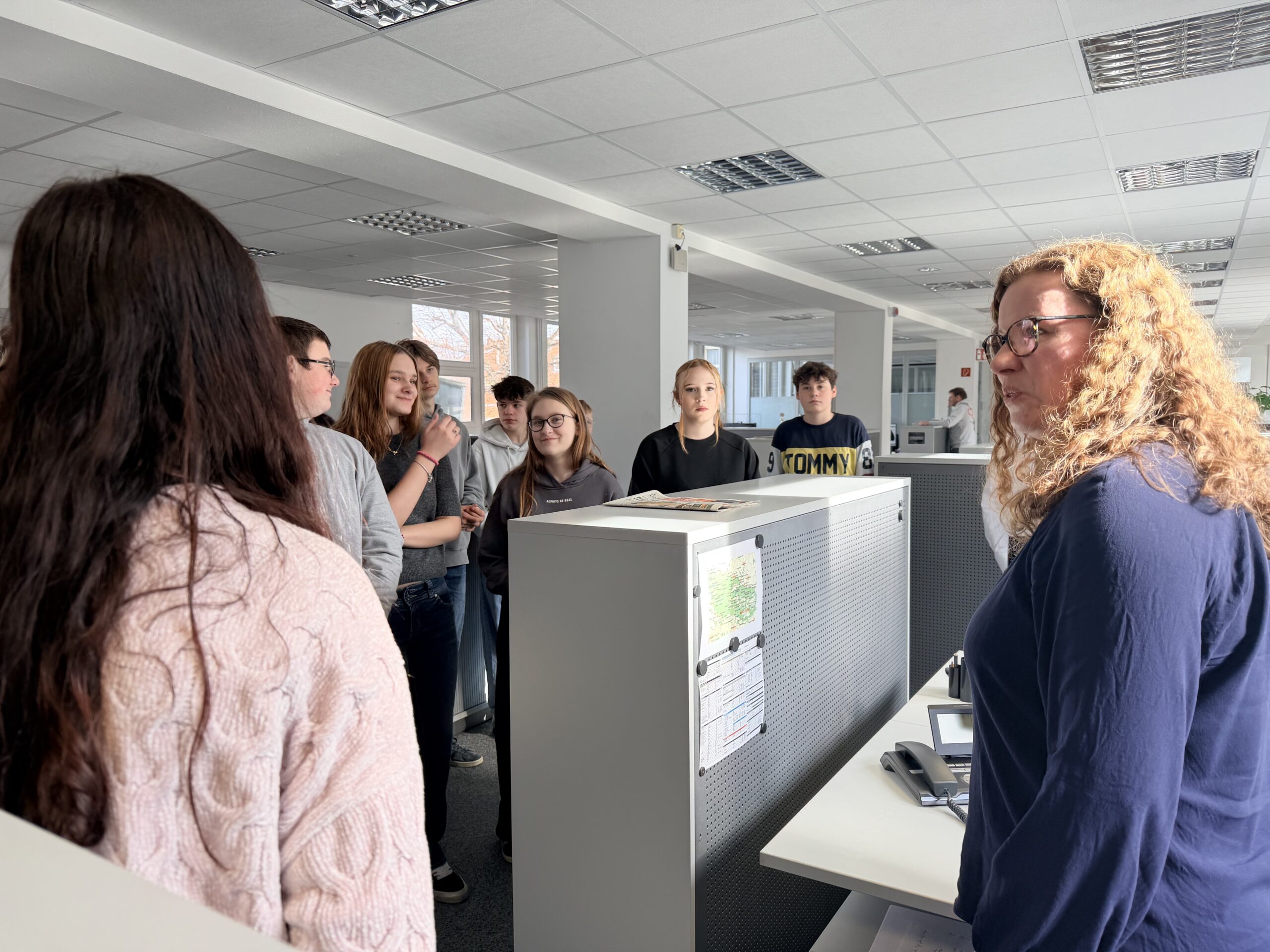 Zunächst ging es in die Redaktion, wo die Jugendlichen an den großen Monitoren verfolgen konnten, wie Zeitungsartikel ihren Weg vom Textentwurf bis zur fertigen Seite finden. Besonders interessant war die Erklärung, welche Ausbildung und Fähigkeiten man braucht, um Redakteur oder Redakteurin zu werden – von Neugier und Sprachgefühl bis hin zu sicherem Schreiben und Teamarbeit.