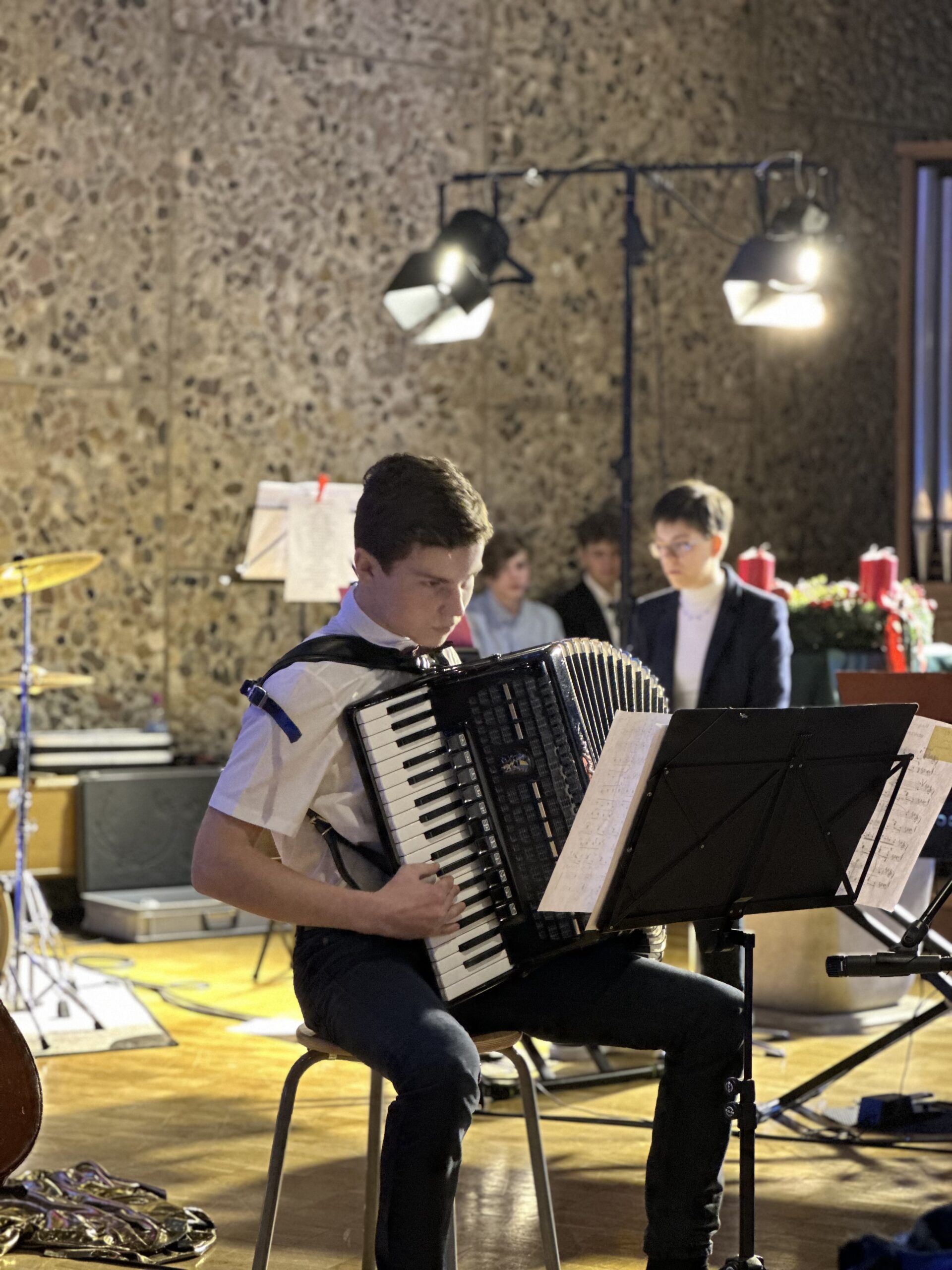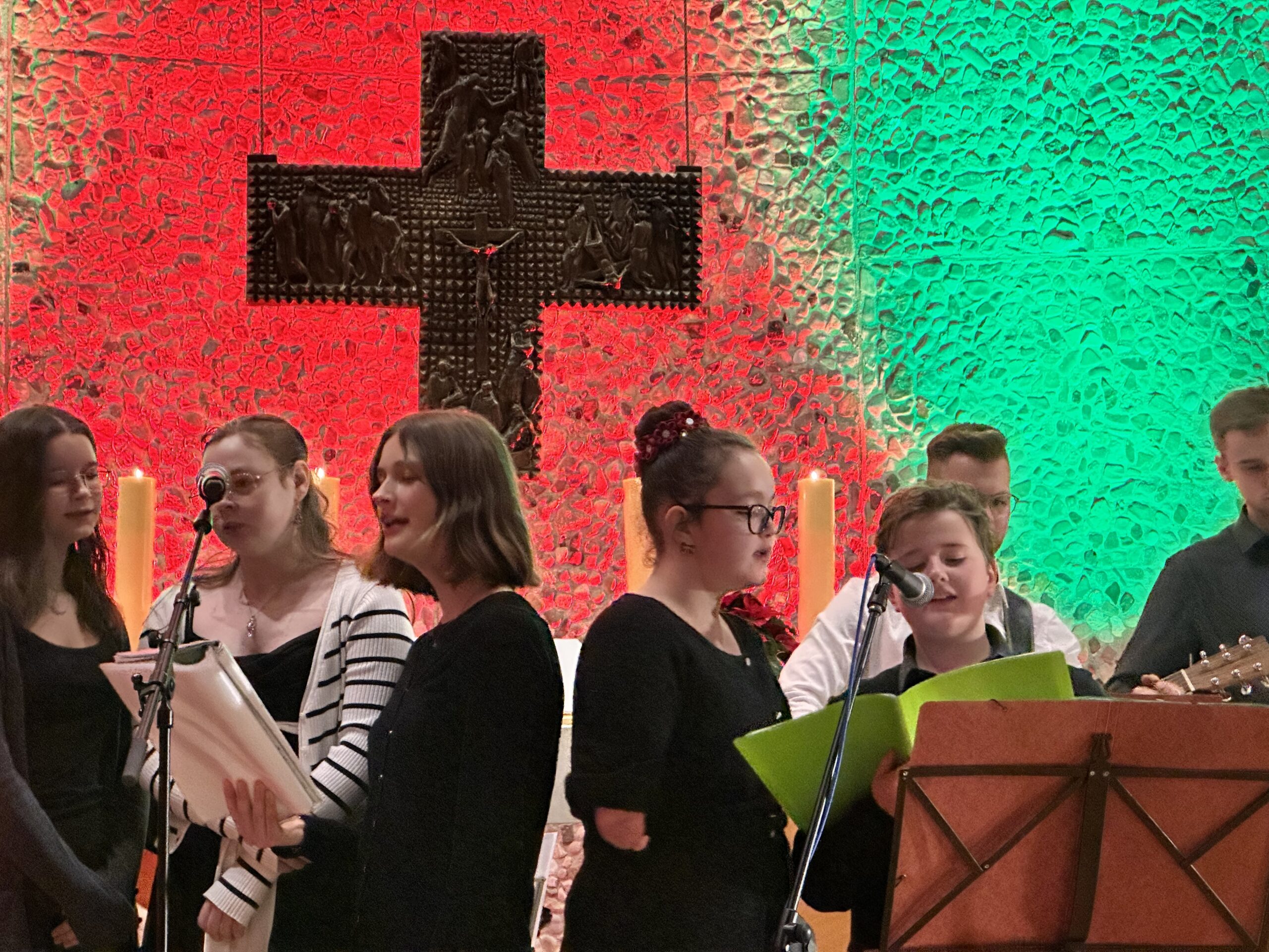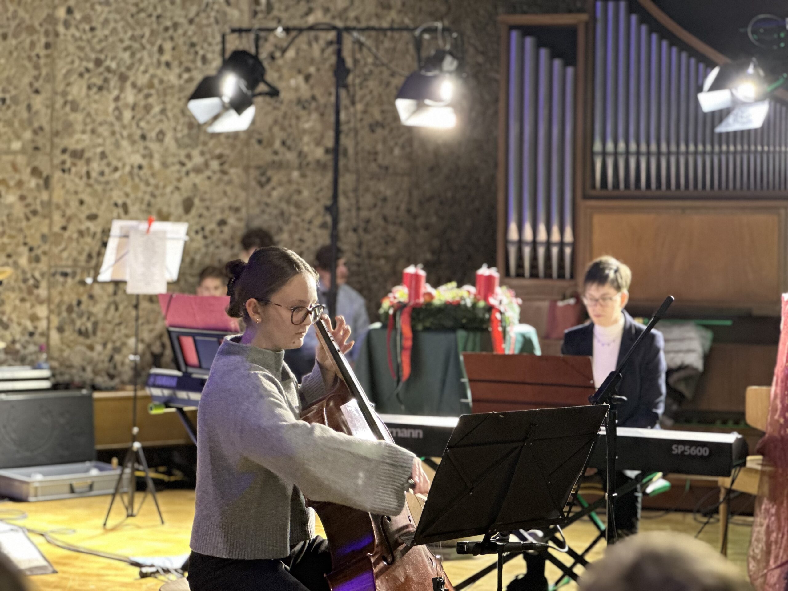 Zwischendurch lud der Schulchor das Publikum immer wieder herzlich zum Mitsingen ein. Bekannte Weihnachtslieder wie „O Tannenbaum“, „Stern über Bethlehem“ und natürlich „Stille Nacht, heilige Nacht“ erfüllten die Kirche und machten das Konzert zu einem gemeinschaftlichen, berührenden Adventserlebnis.