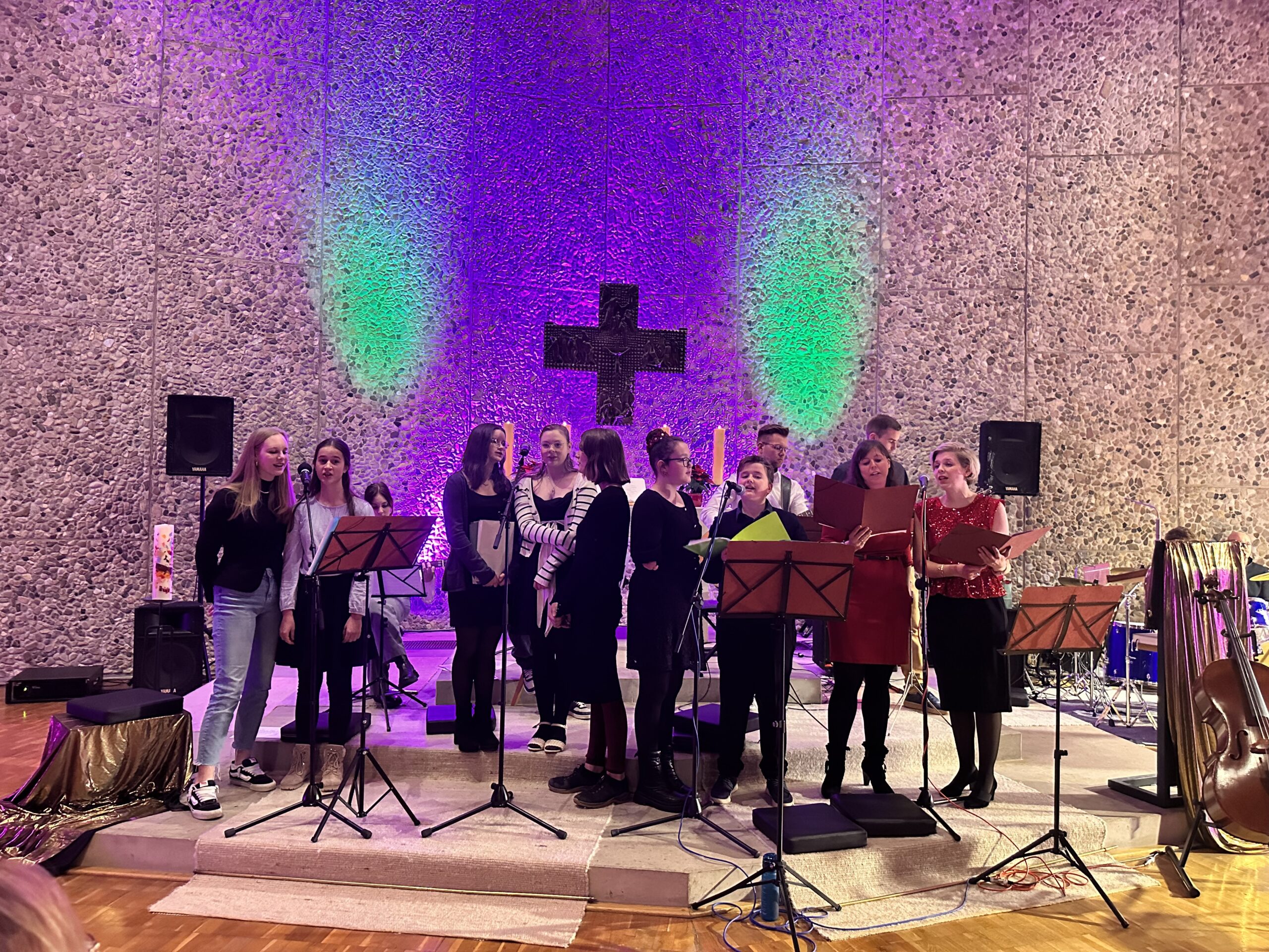 Am Ende des Konzertes bedankte sich die Schulgemeinschaft herzlich bei allen Sängerinnen und Sängern sowie bei der engagierten Technik-Gruppe der Realschule Goldene Aue. Mit stimmungsvoller Beleuchtung und sorgfältig abgestimmter Tontechnik ließen sie die St.-Georg-Kirche in einem warmen, festlichen Licht erstrahlen und trugen maßgeblich zu diesem gelungenen, unvergesslichen Adventsabend bei.