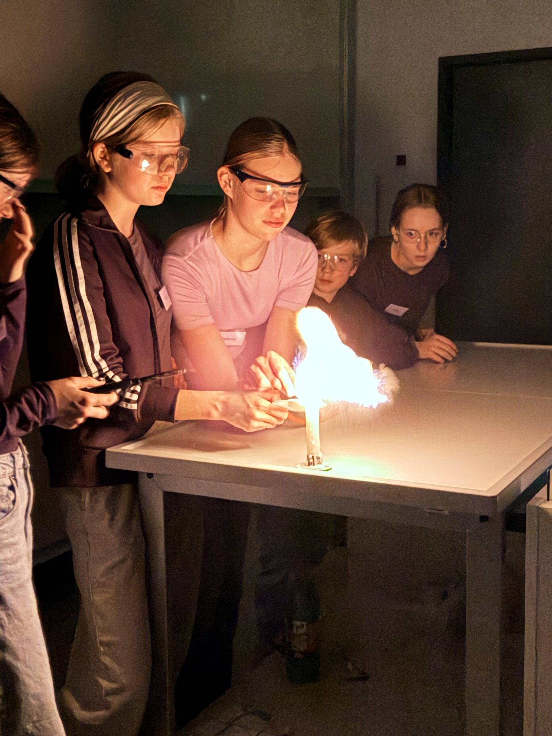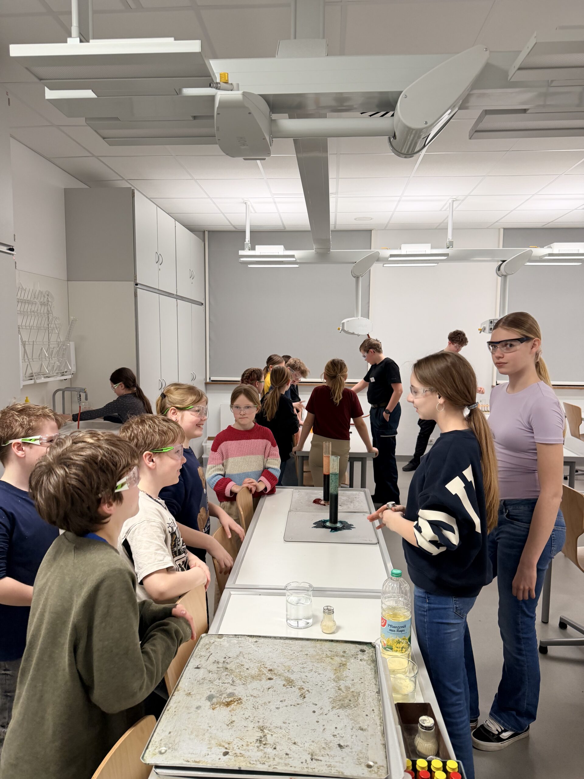 Unterstützt wird sie dabei tatkräftig von engagierten Schülerinnen und Schülern verschiedener Jahrgänge, die ebenso chemiebegeistert sind und ihre Lehrerin bei der Arbeit mit den bis zu zwanzig jungen Gästen unterstützen – vom Aufbau der Versuche bis zum gründlichen Aufräumen am Ende.